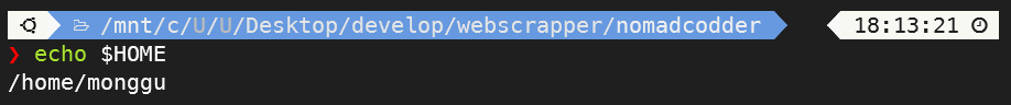 echo $HOME을 통해 현재 $HOME이 어떠한 경로로 지정되어 있는지 확인해봅니다.