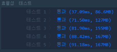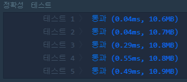 1. 최종 제출 코드와 테스트 결과 (통과)