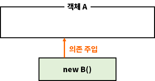 | 2. A 객체 외부에서 미리 생성되어 있는 B 객체를 A 객체에게 주입한다.