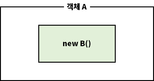 객체 A를 만들 때 객체 B를 사용하기 위해 딱히 신경 써줄 것이 없다는 장점이 있습니다. 그러나 객체 A의 인스턴스가 생성될 때 내부적으로 객체 B의 인스턴스를 새롭게 만들어주기 때문에 두 객체 간 결합도가 강해진다는 단점이 있습니다.