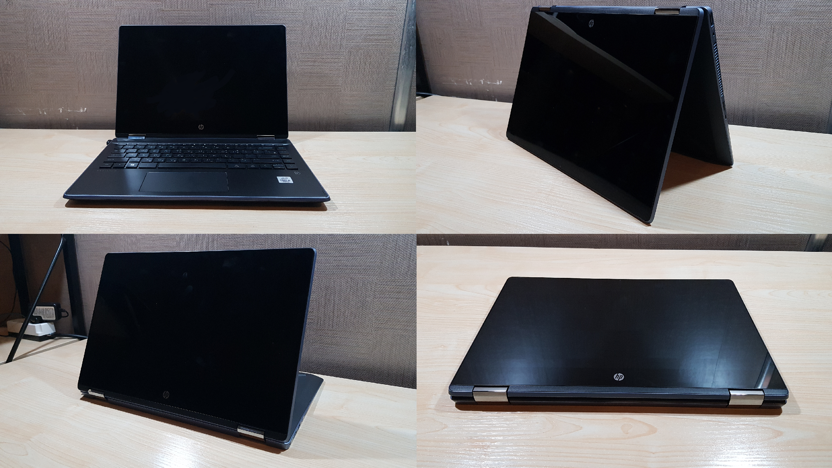 360도 회전이 가능하다 보니 다양한 방식으로 활용할 수 있습니다. HP에서도 이 무한한 활용도를 강점으로 내세워 모드의 이름까지 지어줬는데요. 일반적인 노트북 형태의 랩탑 모드, 영상 시청에 최적화된 텐트 모드, 필기나 그림 그리기 등 펜 사용에 편리한 태블릿 모드, 영상 시청은 물론 터치 게임까지 고려한 스탠드 모드입니다.