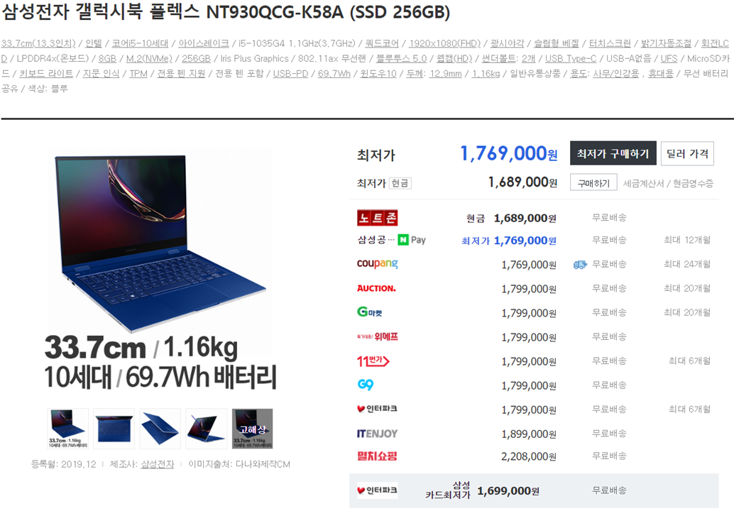 | 무게 | 1.59 kg | CPU 코드명 및 코어 형태 | 코멧레이크 / 쿼드코어 |