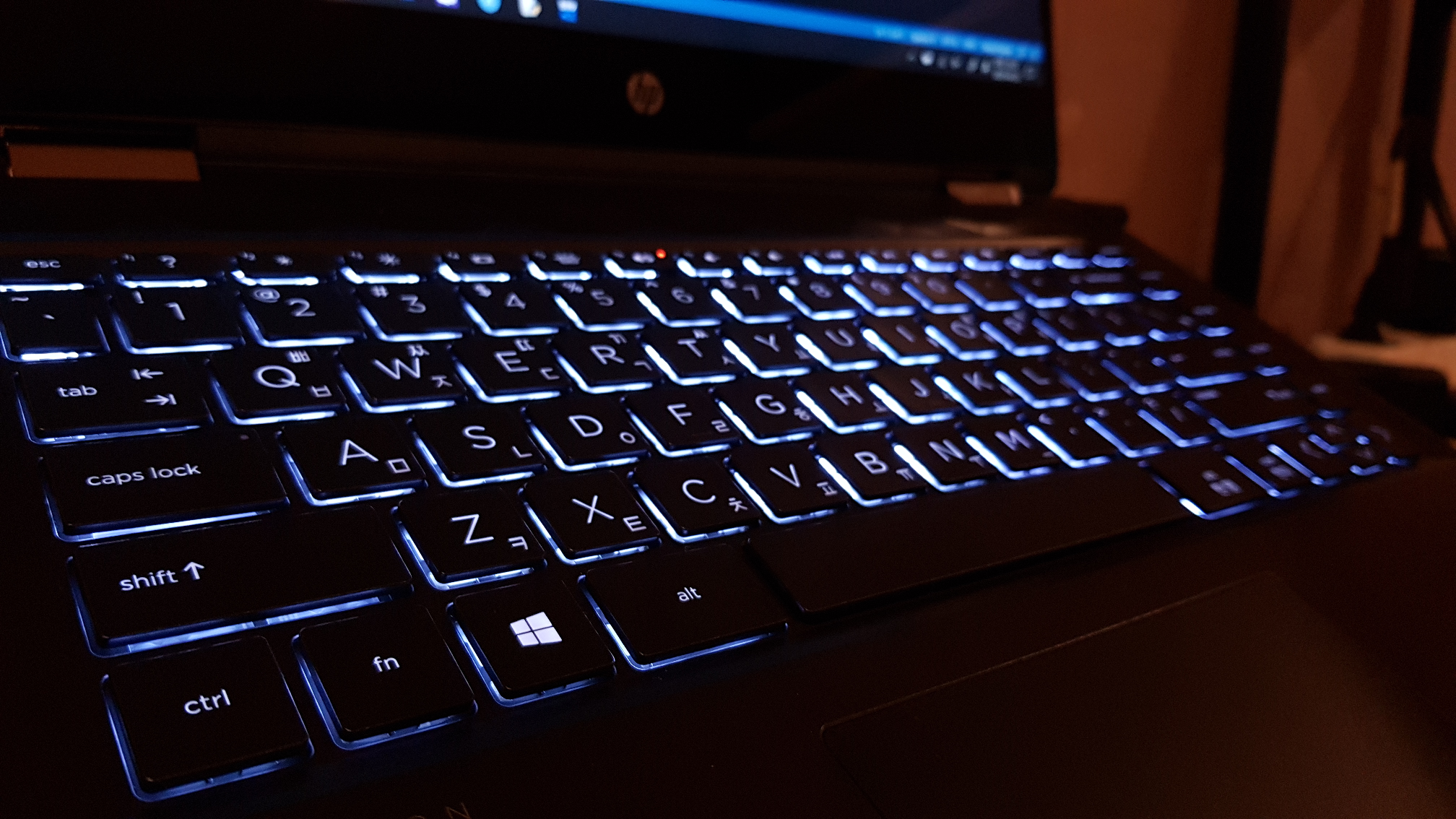 백라이트 키보드... 정말 예뻐요! 노트북 상판의 다크 그레이 컬러와 은은한 보랏빛의 백라이트가 조화롭습니다! 대단한 기능은 아니지만 전 이런 간-지 나는 기능을 굉장히 좋아하거든요! ㅋㅋㅋㅋㅋㅋㅋ 기본적으로 키보드는 타건감이 매우 좋고, 키보드 간 간격도 적당히 벌어져 있어서 오타율이 매우 적습니다. 방향키가 기존에 쓰던 생김새랑 달라서 많이 걱정했었는데, 걱정이 무색할 만큼 하루 만에 잘 적응해버렸습니다. 역시 인간은 적응의 동물 ; ^)
