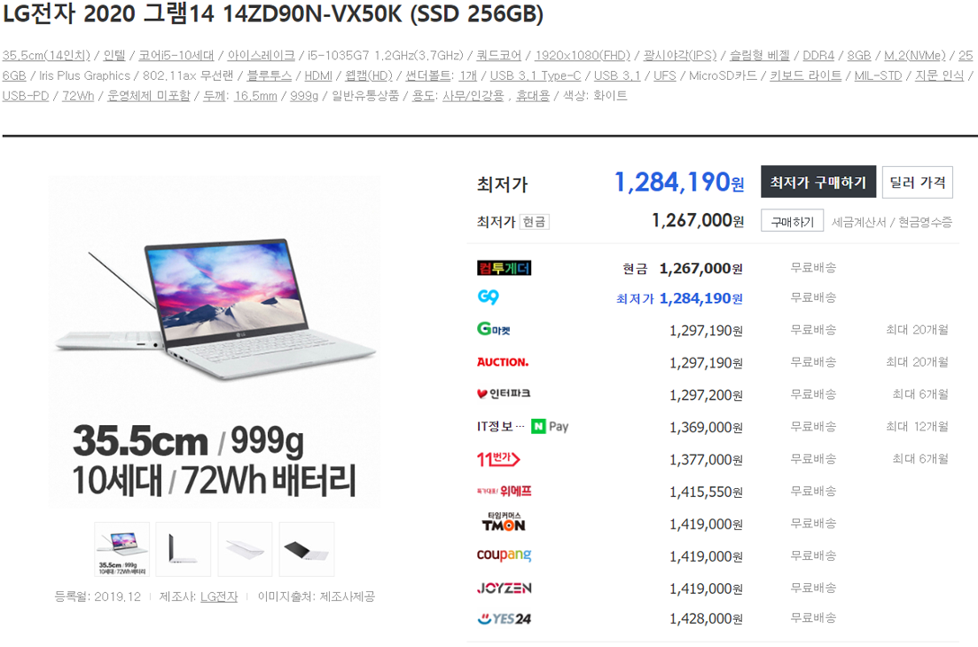 * 아래 사진 3개는 지금까지 말한 노트북들을 최대한 동일한 스펙 선상에 놓고 가격 비교를 한 사진입니다.