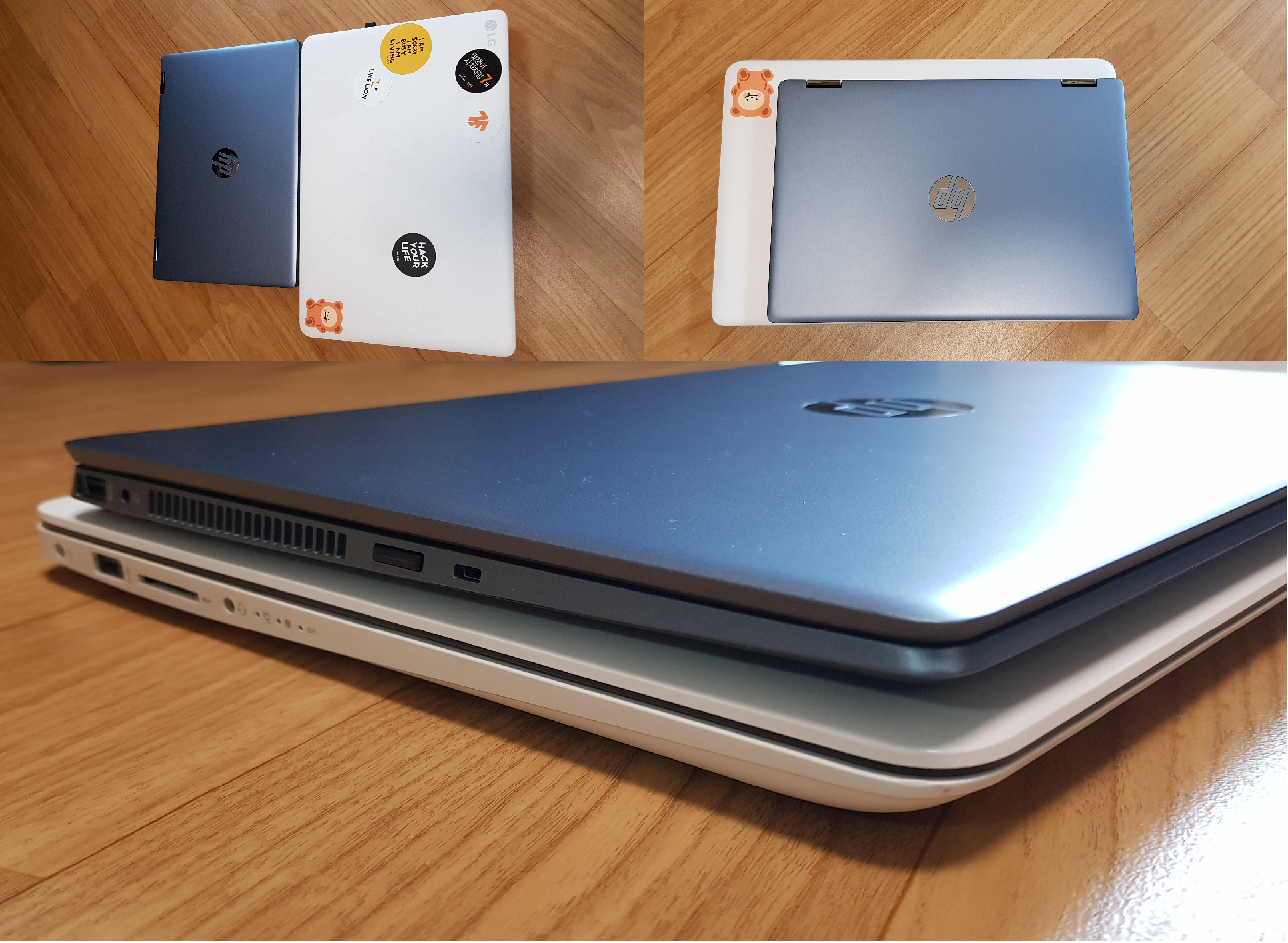 기존에 쓰던 노트북과 가족이 사용하는 노트북을 가져와서 크기와 두께를 비교해봤습니다.