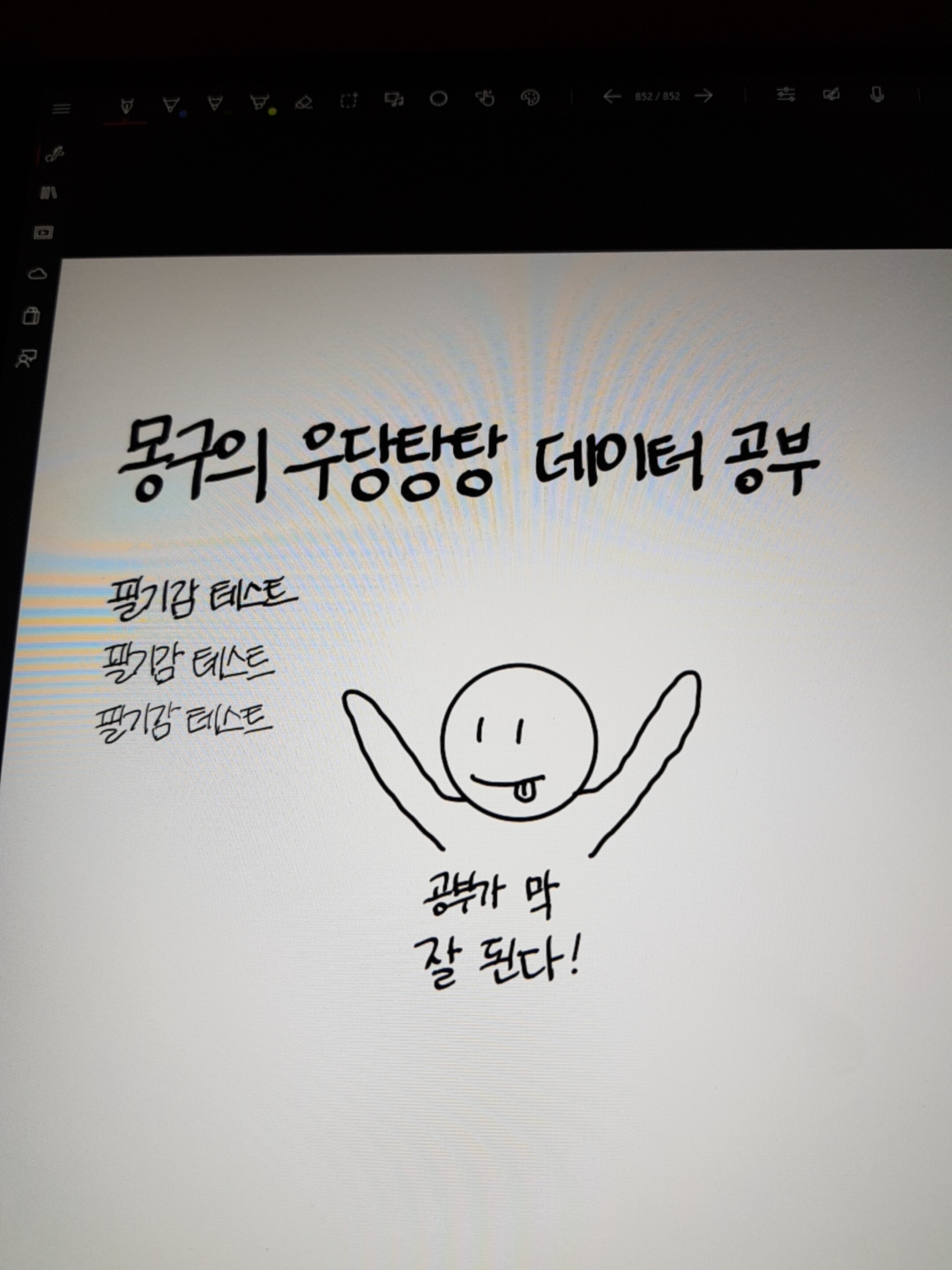 일단 필기감 테스트를 위해 빈 종이에 글씨를 써보고 그림도 그려봤습니다! 글씨는 Inkodo 소프트웨어 기준, 2.5p로 각기 다른 펜을 이용하여 써봤습니다. 이렇게 빈 종이에 필기감 테스트를 해보는 것도 좋겠지만, 실제 공부하는 PDF 페이지에 필기한 장면도 첨부해보겠습니다.