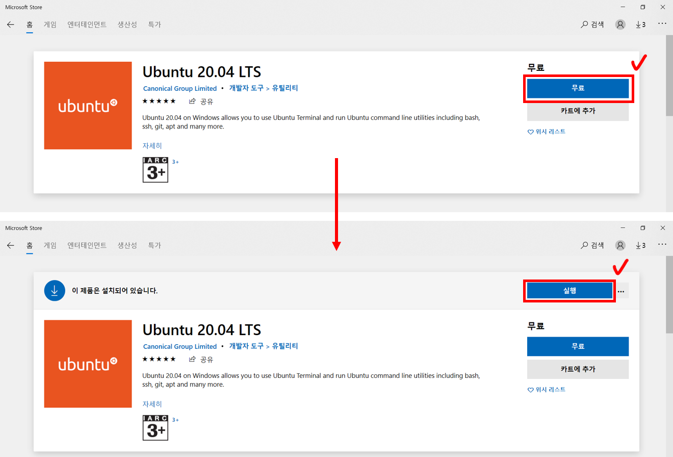 6. '무료'라고 써져있는 버튼을 클릭하여 설치 → 설치가 완료되면 실행