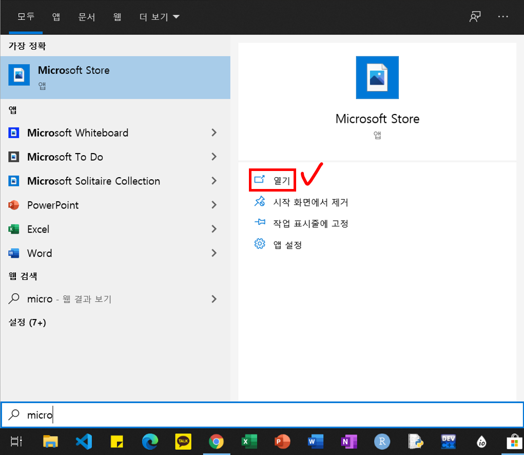 4. 시작 → 'microsoft store' 검색 → 'Microsoft Store' 앱 실행
